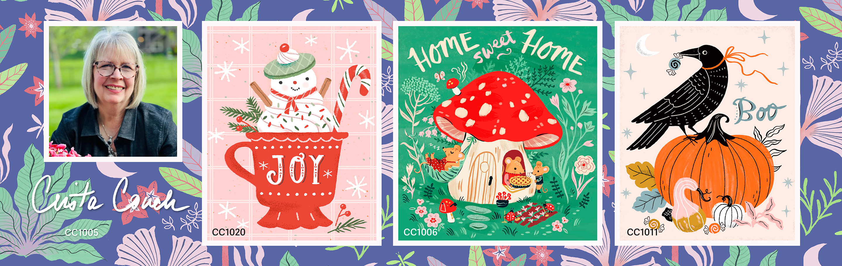 Collaborate with Suzanne Cruise Creative Services to find high-impact artwork for products in these following categories: Books, Calendars, Canvas Tote Bags, Decorative Pillows, Dinner Ware, Embroidery Cards, Fabric Kits, Flags, Greeting Cards, Gift Bags, Hand Painted Ornaments, Home Decor, Lighted Glass Lamps, Mats and Rugs, Napkins, Over The Counter Fabric, Puzzles, Stretched Canvas, Tableware, Table Runners, Wall Decor,Yard Signs and Mailbox Covers, as well as many other categories!